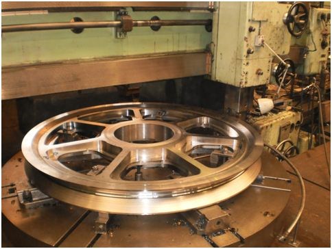 Soustružení drážky lanového kola na vertikálním soustruhu.
