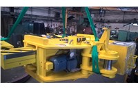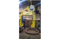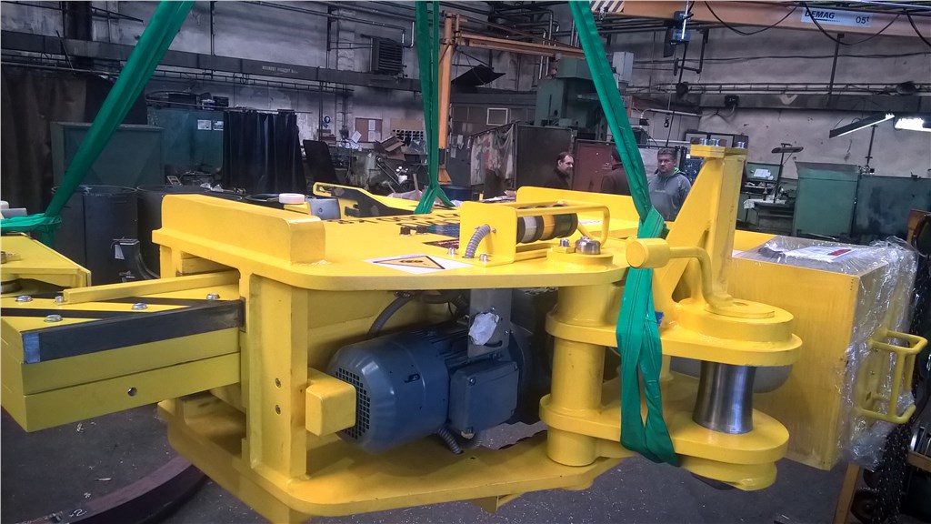 Zvedací zařízení pro manipulaci se svitky plechů v provozu automatické dělící linky plechů.