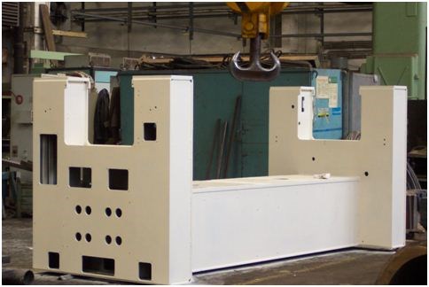Svařený a opracovaný rám textilního stroje.